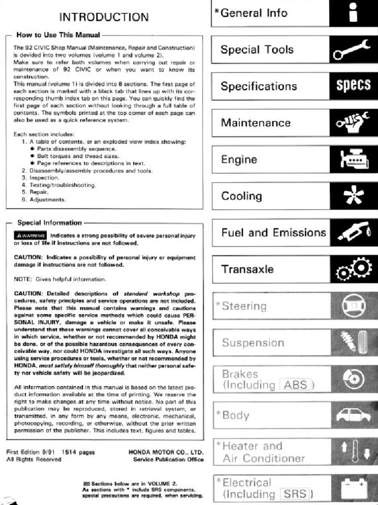 Honda Civic 92 95 Workshop Manual 62sr300a Pdf Pdf